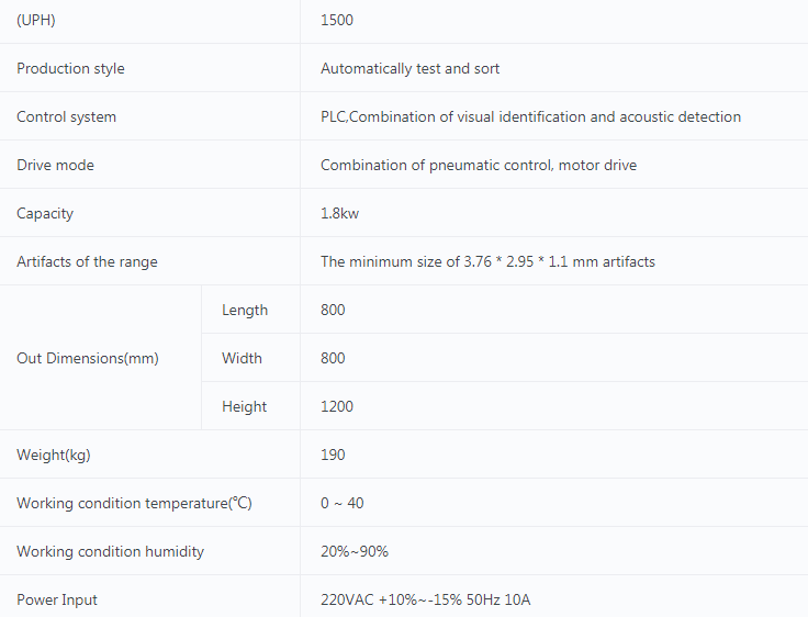 通過(guò)振動(dòng)盤和線性給料器傳送零件,然后經(jīng)過(guò)機(jī)器視覺系統(tǒng)檢測(cè),被機(jī)器人抓取,自動(dòng)連接到測(cè)試系統(tǒng),電聲軟件將收集和分析測(cè)試數(shù)據(jù),然后將零件分類放入不同的箱子。
